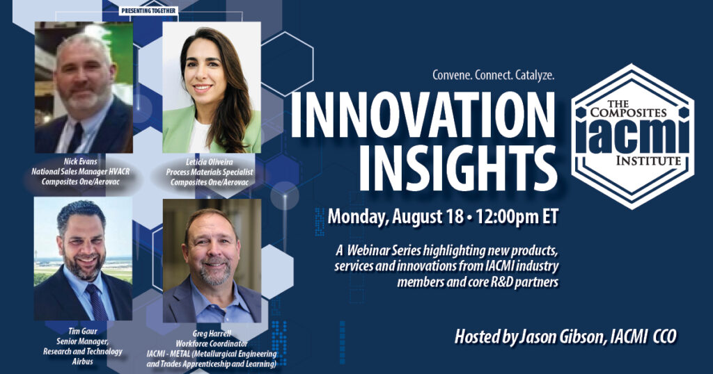 Our monthly webinar series “Innovation Insights” continued Monday, August 18, at 12:00 pm ET. IACMI CCO Jason Gibson moderated discussions with IACMI members featuring their latest news about products, services, technology, and innovations.