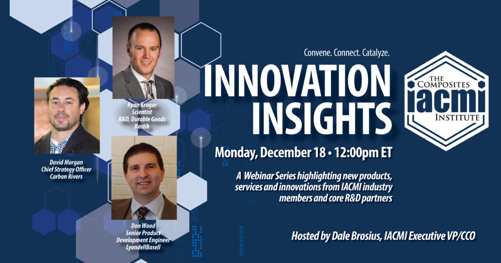 Our monthly webinar series “Innovation Insights” continued Monday, December 18, as IACMI EVP/CCO Dale Brosius, moderated discussions on recent technology advancements. IACMI members and partners presented background on new technology, products, and the key advantages provided, as well as application examples.