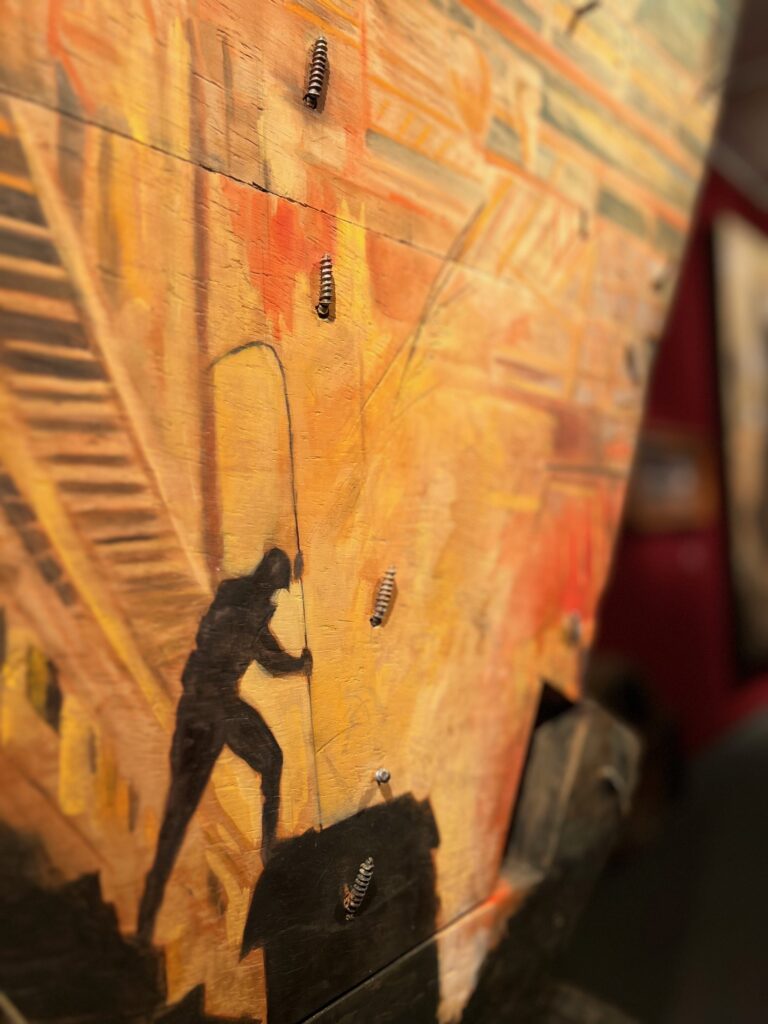 Cory’s studio is a time machine built from weathered wood, technical blueprints, and bold new ways to showcase them. The patterns—hand-carved forms once used to cast the components of steel mills—serve as both historical artifacts and creative springboards. “These things were all built by hand,” Cory says. “Before CAD, before CNC machines. Built with skill, sweat, and imagination.” Each salvaged artifact—some dating back to the 1890s—tells a story.
