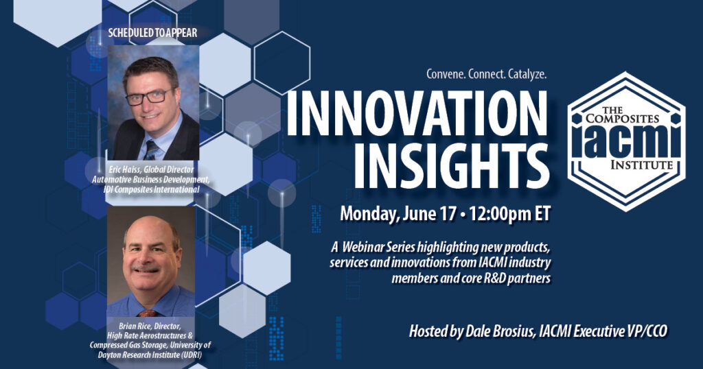Our monthly webinar series “Innovation Insights” continued Monday, June 17, as IACMI EVP/CCO Dale Brosius moderated discussions on recent technology advancements from IACMI members.