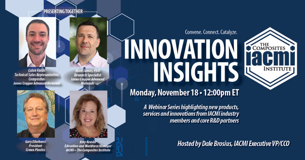 Our monthly webinar series “Innovation Insights” continued Monday, November 18, as IACMI EVP/CCO Dale Brosius moderated discussions on recent technology advancements from IACMI members.